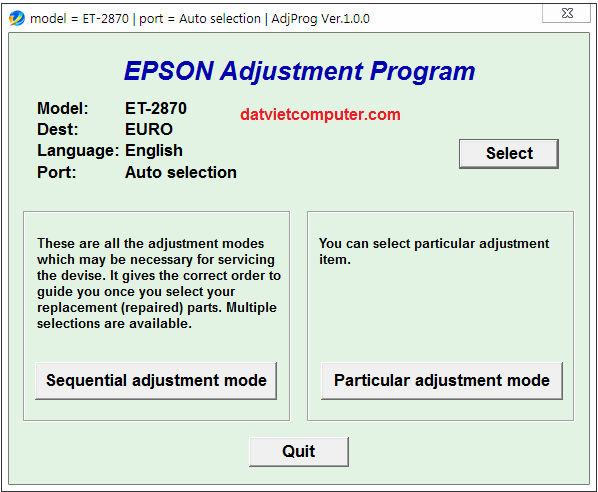Epson ET-2870 Adjustment Program — is a original utility program for the specified printer models, the program allows you to reset the waste ink pad counter, prescribe the print head ID, do printer initialization and other functions.
